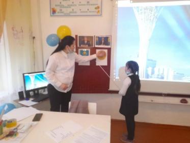 В Ащигольской СШ учитель начальных классов Мурат Н.,провела открытое занятие на тему «Государственные символы Республики Казахстан».
